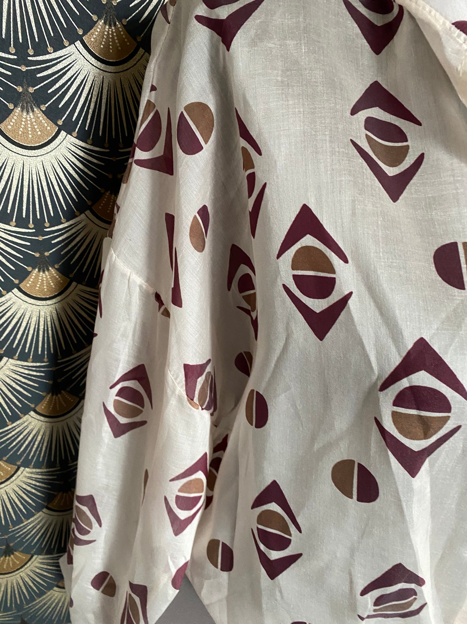 Blouse fermée par boutons , manches longues à motifs .